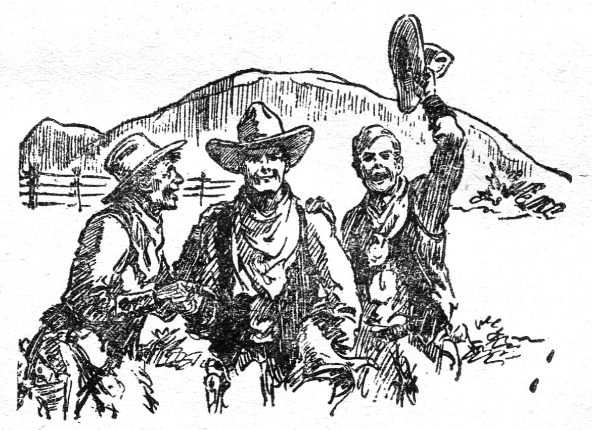 “Them two jiggers shore do work fast. You’d think they was long separated brothers; honest, yuh would. Somebody told Harry how it all came out, and he wants yuh to come down right away, and—say, you fellers can have Moolock, if yuh want it.”